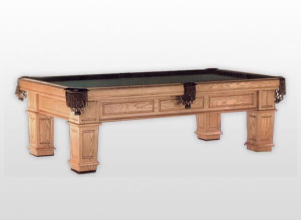 The Highlander (Standard Leg Edition) embodies traditional English-inspired craftsmanship with strong architectural presence. The Highlander features recessed panels along the apron and legs, creating depth and visual structure while maintaining a clean, balanced profile. The substantial leg design anchors the table with a stately, furniture-grade appearance that complements both classic and transitional interiors. Available in a variety of finishes and cloth options to create a fully customized statement piece, including a precision-leveled slate playing surface and responsive cushion rails engineered for consistent, tournament-quality play.